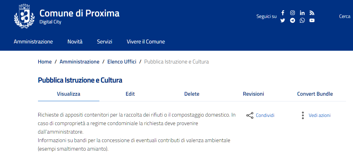 - Visualizza: ovvero la visualizzazione della pagina pubblicata