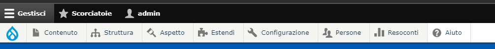 Nella parte alta compariranno i menù di editor che permettono l'inserimento di nuovi contenuti: