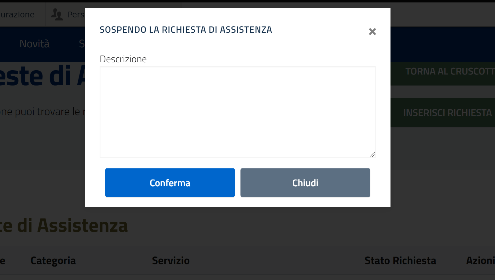 Quando si clicca sui pulsanti di "AZIONE" viene sempre richiesto di confermare e di inserire il motivo dell'azione che si sta eseguendo.