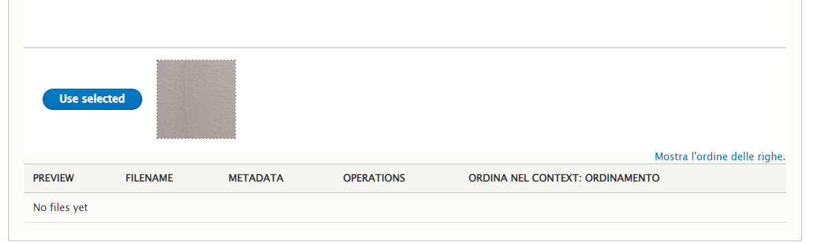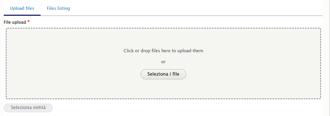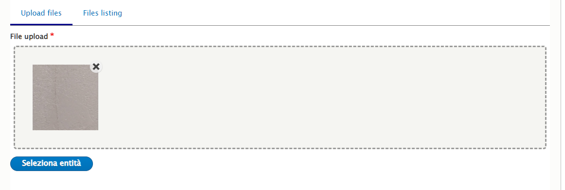 Cliccare "Files listing" nel caso si voglia usare un'immagine già precedentemente caricata, oppure cliccare "Seleziona i file" e caricare l'immagine desiderata dal proprio pc.