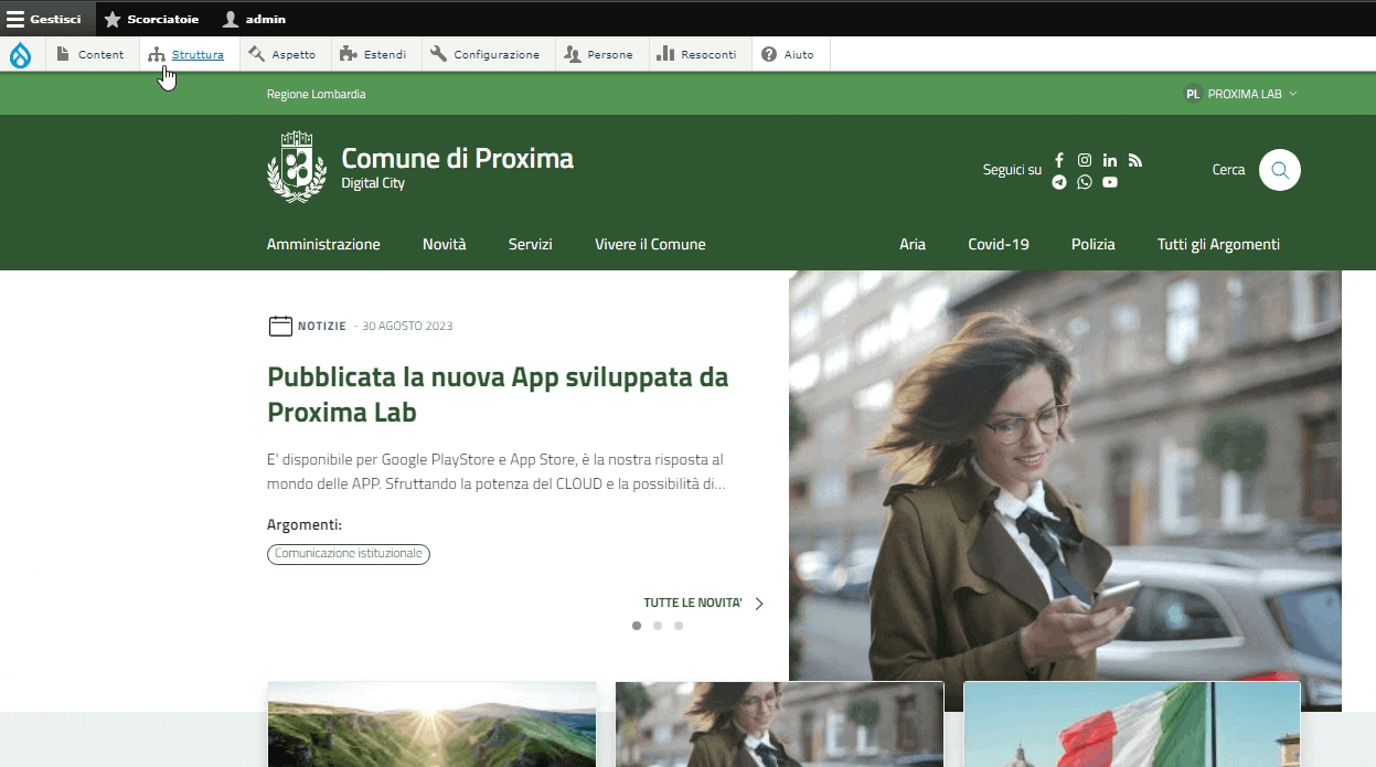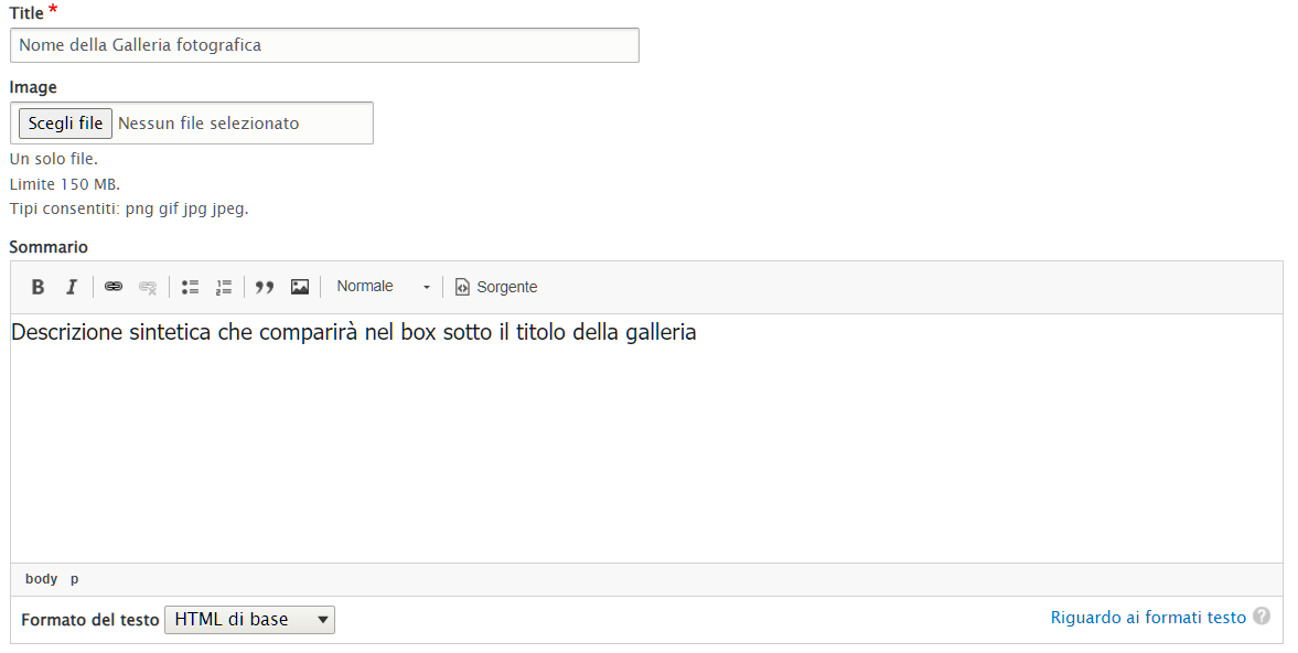 Questo contenuto permette di creare gallerie fotografiche che verranno pubblicate sotto la voce "Vivere il Comune" del menù principale.