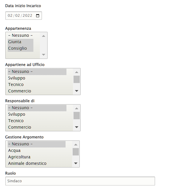 Questo contenuto permette di profilare i politici da aggiungere ai diversi organi politici.